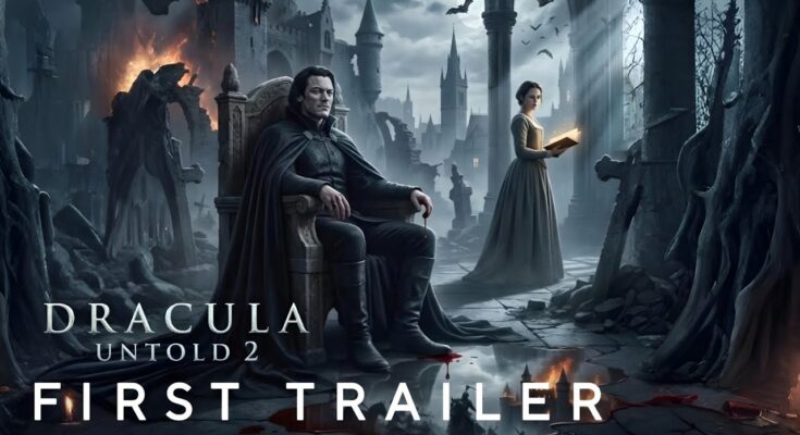 Title at bottom: ‘DRACULA UNTOLD 2’ in bold, metallic gothic font with cracked textures and glowing red edges. Subtitle beneath: ‘ETERNAL REIGN’.